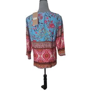 he Anthropologie Aziza Top in Taupe is a bohemian-inspired pullover that effortlessly merges comfort with chic style. Crafted from a soft taupe fabric, this top features intricate embroidery along the neckline and sleeves, adding a touch of artisanal charm to its design. The relaxed silhouette drapes gracefully, offering both comfort and elegance. A tie-neck detail adds a playful yet sophisticated element, allowing for customizable styling options. Versatile enough to be dressed up or down, this boho pullover embodies effortless sophistication and free-spirited charm, making it a versatile addition to any wardrobe.