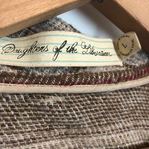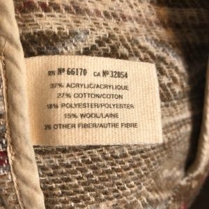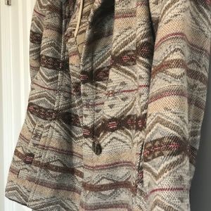 Acrylic, cotton, polyester, wool blend Pea Coat from Anthropologie. Daughters of the Liberation brand. VERY warm! Tans, browns, gray and red colors in aztec print.