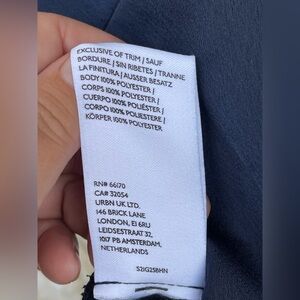 From the bridesmaids line navy blue satin, in very good condition no stains, the only flaw is in the bottom of hem theres a 1 inch tearing as shown on picture not noticeable since is very tiny cut other than in excellent condition
