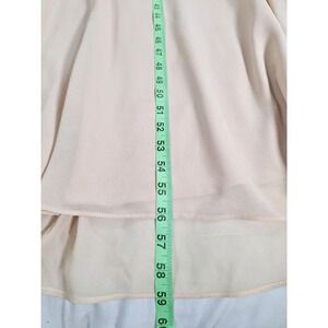 This stunning Anthropologie BHLDN capulet dress in a beautiful nude color is perfect for any formal occasion. The dress features a V-neckline, sleeveless design, and a zip closure. The button and layered accents add a touch of elegance to the dress, making it perfect for weddings, parties, or cocktail events. The dress is made of a comfortable blend of polyester and spandex, with a satin fabric type that gives it a luxurious look.