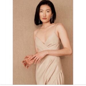 Anthropologie BHLDN Freya Satin Charmeuse Champagne Maxi Dress Sz 16