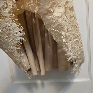 Anthropologie BHLDN Hitherto Kinsey ivory/cream lace dress. Cream-colored lining with cream/ivory lace overlay. Keyhole back. Build-in sweetheart neckline bra/corset for illusion neckline effect. Side zip closure. Worn once to rehearsal dinner for my wedding. Size 0.