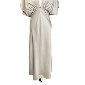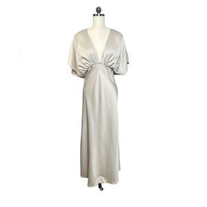 BHLDN Leila Deep V Satin Maxi Gown in Champagne | Size 4