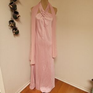Anthropologie BHLDN Ruby Twist Front Halter Bridesmaid Dress Pink with sheer wrap
