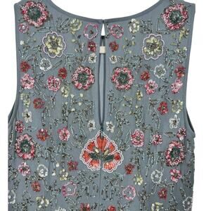 Anthropologie BHLDN Zelma Floral Beaded Embellished Dress. Sleeveless. Pullover style. Back keyhole closure. Lined.