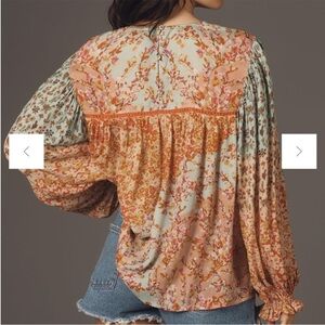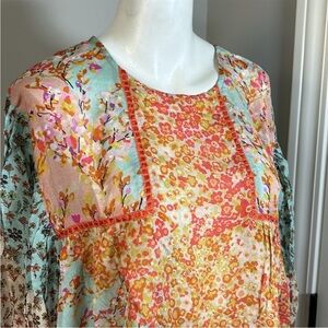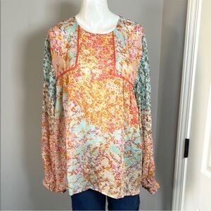 Anthropologie BInk Miranda Peasant Blouse LIGHT ORANGE Boho Floral Sz XL NEW