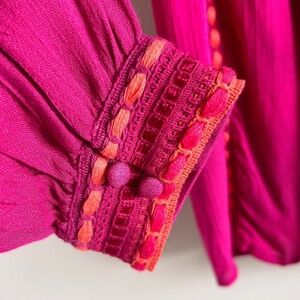 Boho, Delicate, Work, Artsy, Unique, spring, fall, Anthropologie, BLANK LONDON, Lissa blouse, peasant blouse, embroidered blouse, fuchsia top, viscose blouse, boho chic, NWT, size M, romantic top, tassel blouse, blouson sleeves, lightweight blouse, spring top, fall top, statement blouse, elegant boho, luxury casual.