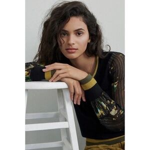 Anthropologie BL^NK Nela Black Sweater Knit Abstract Watercolor Blank X-Small