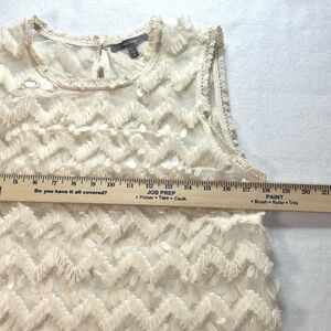 Anthropologie BLUE TASSEL Ivory Semi Sheer Top Sleeveless Embellished