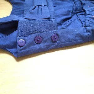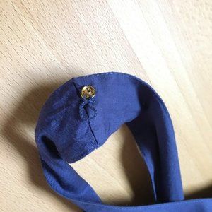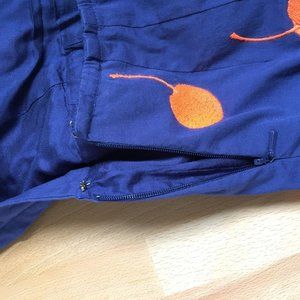 Bought from Anthropologie. Cherry-drop Sheath Dress. 98% Cotton and 2% Spandex. Lining is 100% Viscose. Navy blue with embroidered orange cherries & bow detail at back. Side boning for a structured look, so that back strap stays nice and put! Loops to keep your bra strap in place, 3 button closure for extra cute detailing and a hook eye side zip to finish. Think weddings, vineyards, festivals, wherever you want to look adorable & chic...a bit sexy with that partial open back!