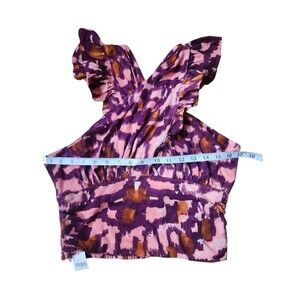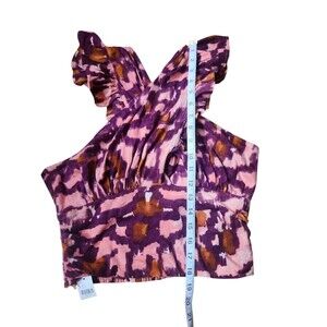 Anthropologie Babydoll Cropped Top Criss-cross Purple Camouflage Ruffle Beach Boho Summer