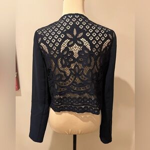 removed. Gorgeous lace inset blazer. The Bailey44 Cascara Jacket is a lightweight layering piece with lace back detail.