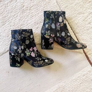 Anthropologie Bar III Heeled Black Brocade Ankle Boots Booties Floral Satin 9 10