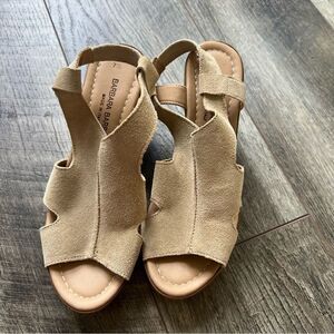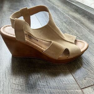 Anthropologie Barbara Barbieri Wedge Sandals Size 7.5 Italian Suede Taupe Shoes