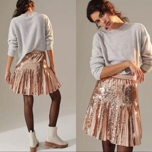 Anthropologie || Bea Sequined Mini Skirt Pleated Rose Gold Blush 2