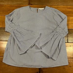 BeachLunchLounge Blue Stripe Bell Sleeve Top. Size L. New condition, no flaws.