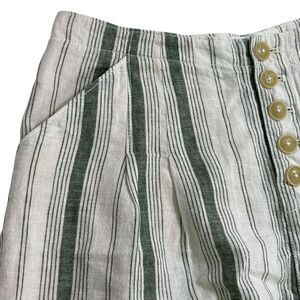 Anthropologie Beachgoer Linen Cotton Shorts in Green White Stripes Size 2