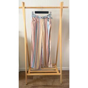 Anthropologie Beachy Striped Wide Leg Pants Linen Blend Womens Size 8