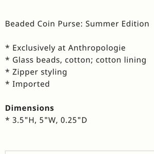 Anthropologie Beaded Coin Purse: Summer Edition NWT