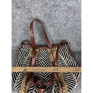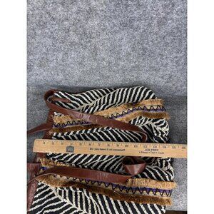 Anthropologie Beaded Shoulder Bag Womens Brown Leather Strap Zebra Boho Fringe