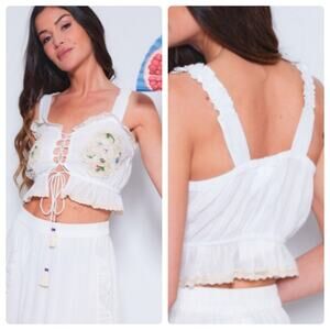 Anthropologie Beatnik Couture Embroidered Crop Top, Medium NWT