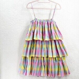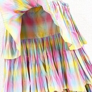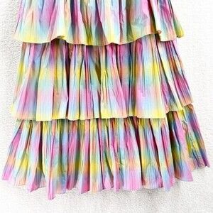 Anthropologie Beatrice B Rainbow Tiered Dress Pleated Square Neck Size M NWT