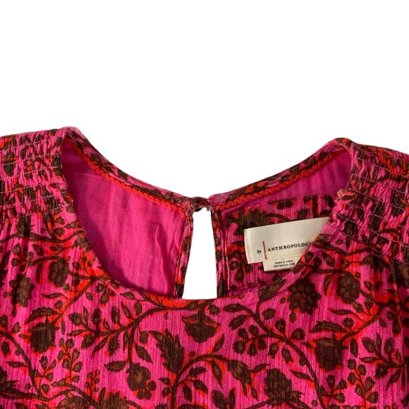 Anthropologie Beau Mini Dress MP Petite Pink Floral Ruffle Hem Western Bohemian
