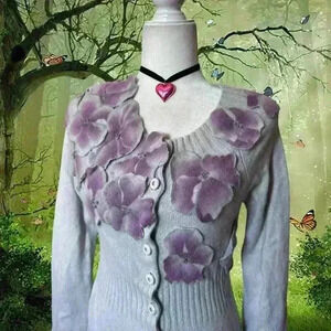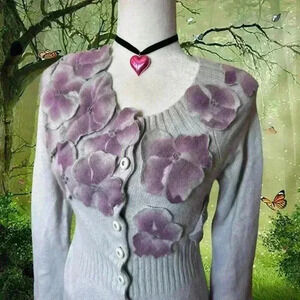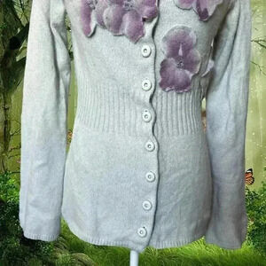 Anthropologie Beaux By Bo Lavender Precious Poppy Spring Cardigan Size S