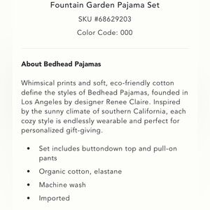 Anthropologie Bed Head Fountain Garden Pajama Bottoms Size Large NWT