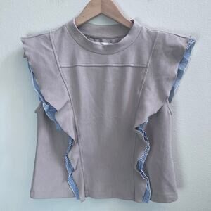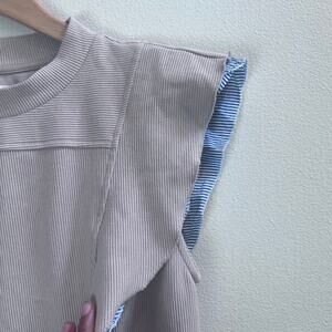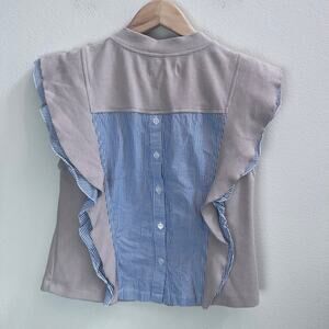 Anthropologie Beige Stripe Ruffle Detail Sleeveless Popover Top Women's Size XS