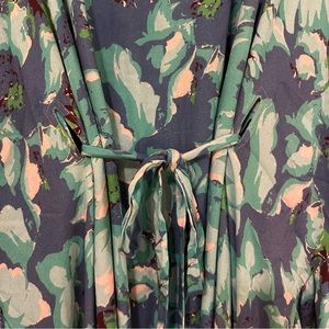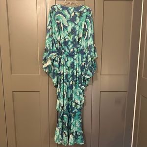 Anthropologie Bel Kazan Blue Floral Belted Kaftan OS One Size Resort New
