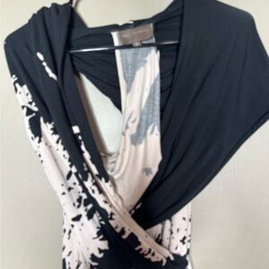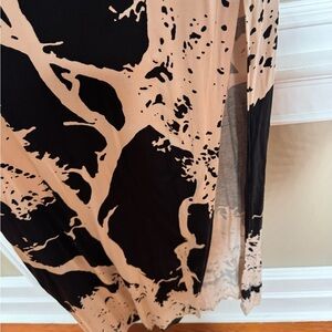 Cream and black maxi dress. Sleeveless. High slit. Pockets! Hooded. Elastic waist for stretch and cinching.