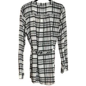plaid top, tunic shirt, fall fashion, minimalist style, casual chic, button down, workwear, layering piece, black and white, everyday style