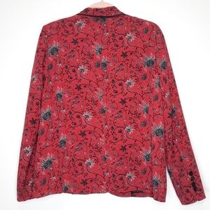 Blazer is a boxy oversized cut, and print is a floral scorpion cannabis motif.
