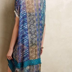 ✨Beautiful pattern and style tunic. ✨Very soft material gorgeous patterns!✨100% sheer silk. ✨✨✨I think is very oversized,...tag says S and it is way too big on me! (I'm size 10). ✨ Price is firm!✨Lace-crochet details on the bottom of the dress and by the sleeves! ✨High-low hem....Length is 34.5"....✨
