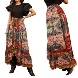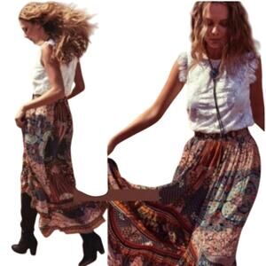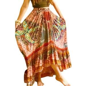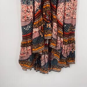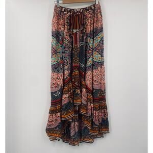 Anthropologie Bhanuni by Jyoti Beaded Printed Maxi Skirt Embroidered High Low Womens size 0