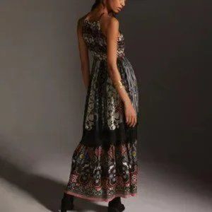 Brand New with tags. Anthropologie Bhanuni by Jyoti Tiered Maxi Dress. Adjustable straps at the neckline. Peekaboo lace detail in the skirt. Sold out style.