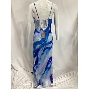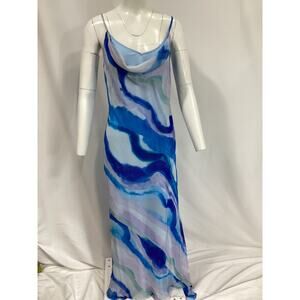 Anthropologie 'Bhldn Astrid' Blue Sleeveless Satin Midi Dress Size L - NWT