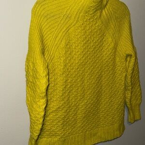 Beautiful and soft oversized cable knit mock neck sweater by Anthropologie in a yellow color with puffy sleeves, size XS. Alpaca blend.