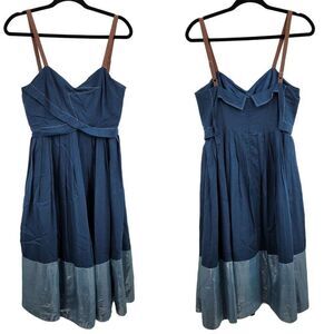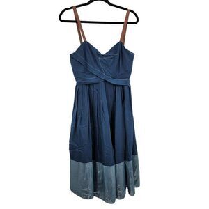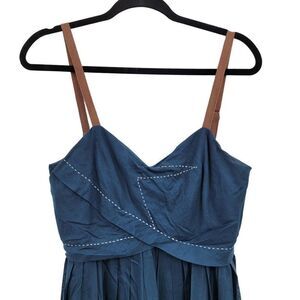 Anthropologie Bian Peasant Midi Dress L Blue Silk Embroidered Sleeveless Pleated