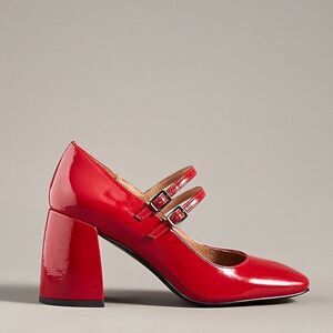 Anthropologie Bibi Lou Milena Heels Cherry Red Patent Leather Maryjane Chunky