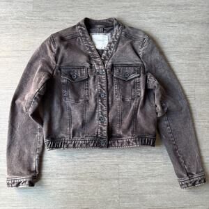Anthropologie Bibiana Bomber Stretch Denim Bomber Jacket Gray Stone Wash Size S