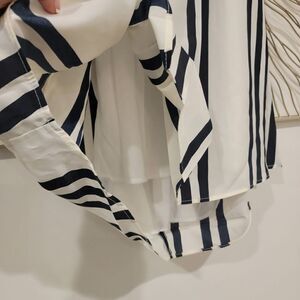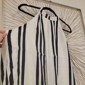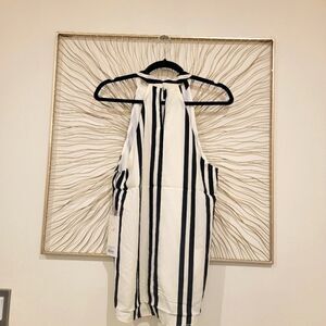 Anthropologie Bishop + Young Ivory Navy Striped High Neck Sleeveless Top Large