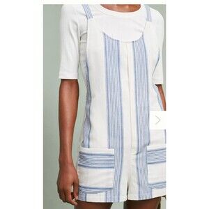 Anthropologie Bishop + Young Romper Overall Bib Women Medium Blue White Striped