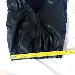 This vegan leather top from Bishop+Young is the perfect way to make a stylish statement. Featuring a luxe-look V-neck and an elastic hem for an edgy cropped fit, this black vegan leather top will be a head-turner. A versatile top that works from desk to dinner!