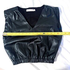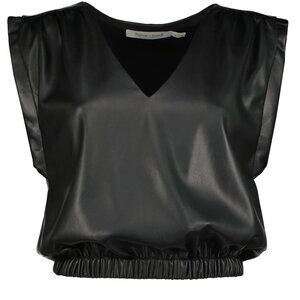 Anthropologie Bishop + Young Simone Vegan Faux-Leather Banded V-Neck Top