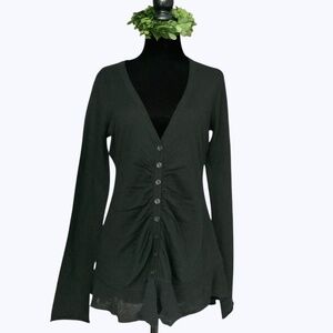 Anthropologie Black Button Trail Wool Blend Gathered Front Cardigan Ruffle SZ M