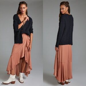 Anthropologie Black Classic Pointelle Cable Knit Cardigan Sweater