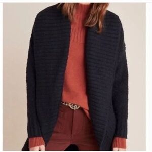 Anthropologie Black Denise Textured Cardigan Cocoon Style XL