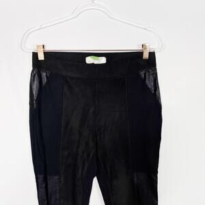 Anthropologie Black Faux Suede Leather Patched Skinny Leg Pants 28 Zip Ankle